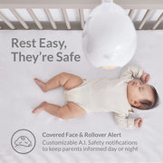 The first baby monitor to apply AI to baby's sleep, safety, and memories. Our AI safety detection looks out for baby's face being covered, stuck rolling over, crying, and generates sleep analytics report, auto-captures unique movements, and more.