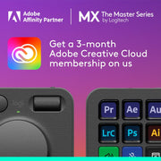 The purchase of MX Creative Console includes a 3-month complimentary membership to Adobe Creative Cloud All Apps for new and existing Adobe users.