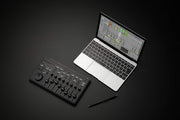 Smaller than a letter-sized sheet of paper, the nanoKONTROL Studio is designed for thinness. It’s the perfect size to easily carry in a bag and use with your computer. In spite of its compact size, its controllers provide generous power and a solid feel, making it a convenient and versatile MIDI controller.